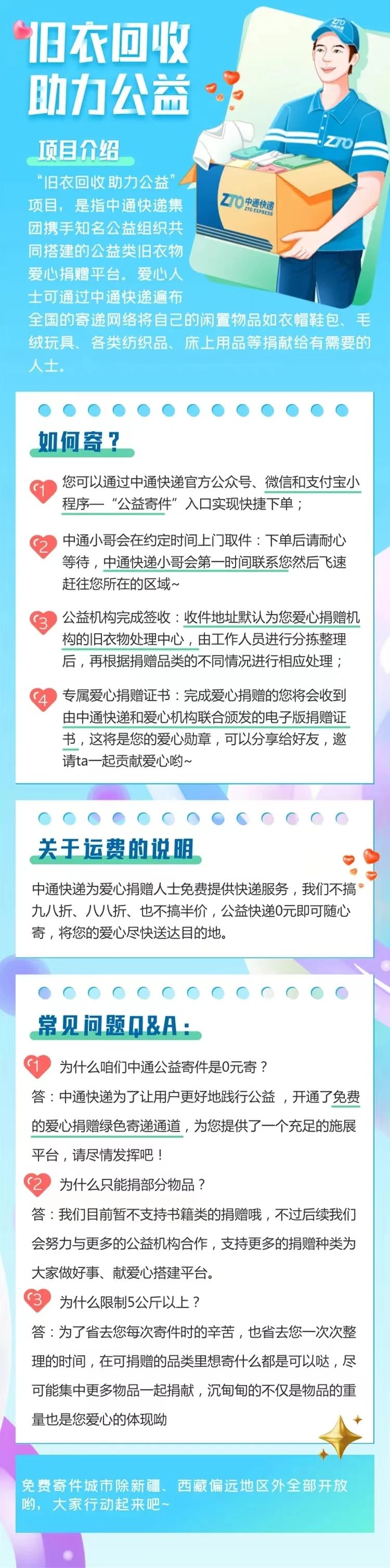 广大党员、团员、职工群众可将自己的闲置物品,如衣帽鞋包、毛绒玩具、各类纺织品、床上用品等整理保存至党支部、团支部,党团组织统一将党员、团员、职工群众们的爱心物品通过中通快递免费运送到公益组织(上海七彩心志服务发展中心),清洗消毒后支援偏远贫困地区,捐赠给有需要的人士。参与成功后,上海七彩心志服务发展中心会颁发电子公益证书。